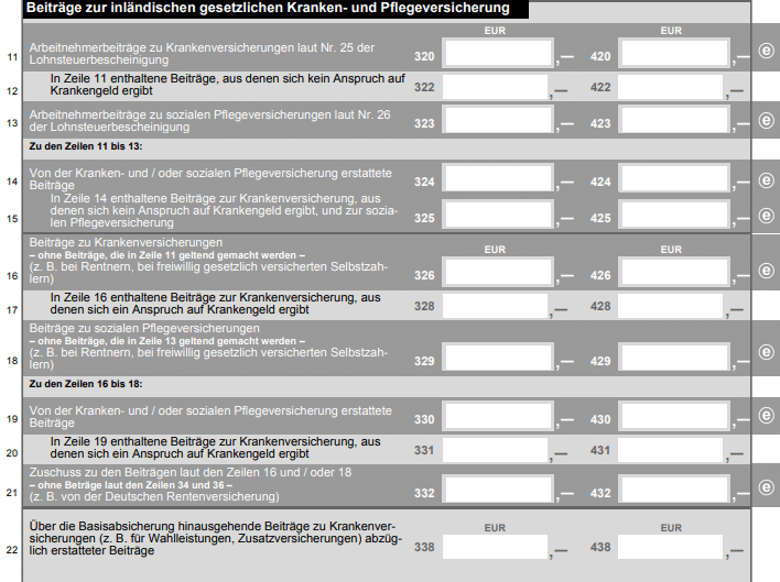 | Private Pflegeversicherung | Vollständig | Anlage „Vorsorgeaufwand“ | |